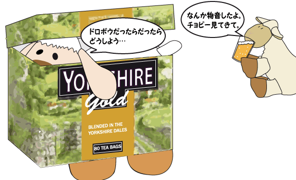 ジー、ジー、ジ(これダイアル音)。プー、プー、プー(これ呼び出し音)。もしもし、ぼくマトンです。知らない人が来ました。とりあえずエアギターならぬエアフォンで誰だか聞いてみました。そしたら、あわてて出ていっちゃった。ぼくなんか悪いこと言ったかな?チン。(受話器置いた)